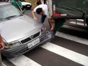 Caminhão se envolve em acidente e bloqueia trânsito no centro de Osório