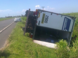 Caminhão tomba na na RSC-101 em Palmares do Sul