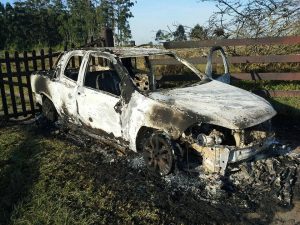 Abigeatários atiram e queimam veículo de administrador de fazenda em Osório