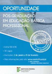 IFRS: inscrições abertas para a seleção da Pós-graduação em Educação Básica Profissional