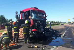 Colisão entre três caminhões bloqueia BR-101