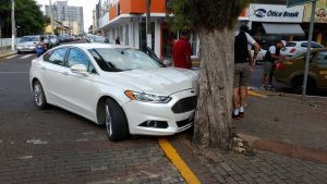 Motorista colide em árvore no centro de Osório