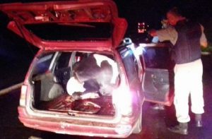 Trio é preso com vaca dentro de carro na Freeway