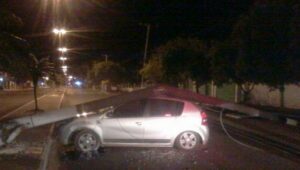 Motorista perde controle de veículo e colide em poste na Avenida Paraguassú