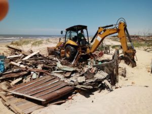 Casas construídas irregularmente são demolidas na praia de Magistério