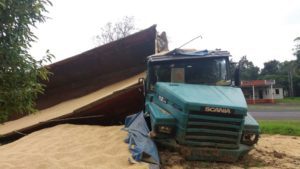 Motorista perde controle de carreta e tomba na BR-101 em Osório