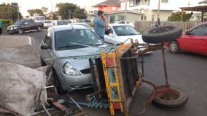 Cavalo com carroça foge em disparada e atinge veículos em Osório