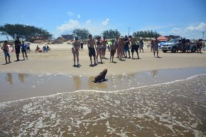 Lobo-marinho vira atração na beira da praia em Mariluz