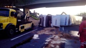 Carreta tomba na Freeway e deixa trânsito lento