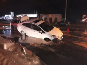 Veículo cai em cratera aberta no asfalto em Capão da Canoa