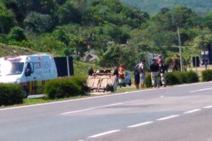 Veículo capota na BR-101 em Osório