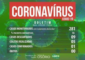 Coronavírus: Osório tem 281 pessoas monitoradas