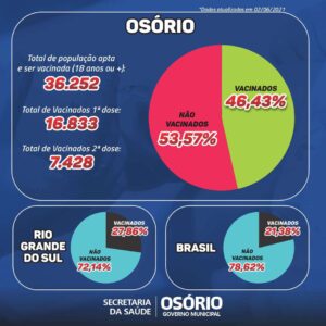 Osório tem quase a metade da população apta vacinada com a 1° dose