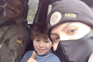 PMs presenteiam menino que no escuro caminhava 3 horas para chegar na escola no Litoral