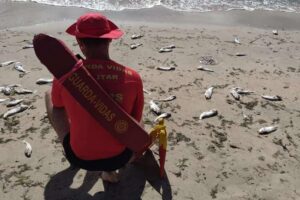 Milhares de peixes mortos aparecem na beira da praia no litoral sul