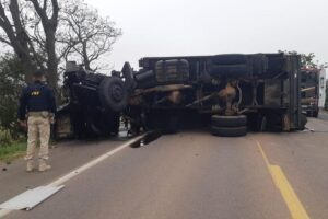 Acidente envolvendo três caminhões deixa feridos na BR-290