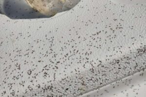 Veranistas são obrigados a sair da beira mar após infestação de insetos