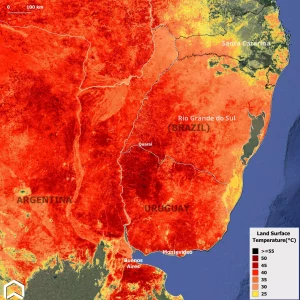 Satélite europeu registra temperatura da superfície em níveis críticos no RS
