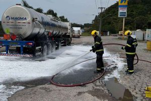 Vazamento de etanol na BR-101 mobiliza bombeiros após colisão em SC
