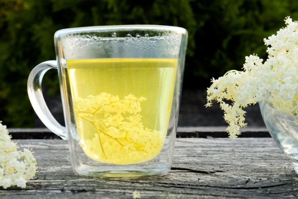 - Chá de sabugueiro: feito com flores secas, alivia sintomas de gripes e resfriados.