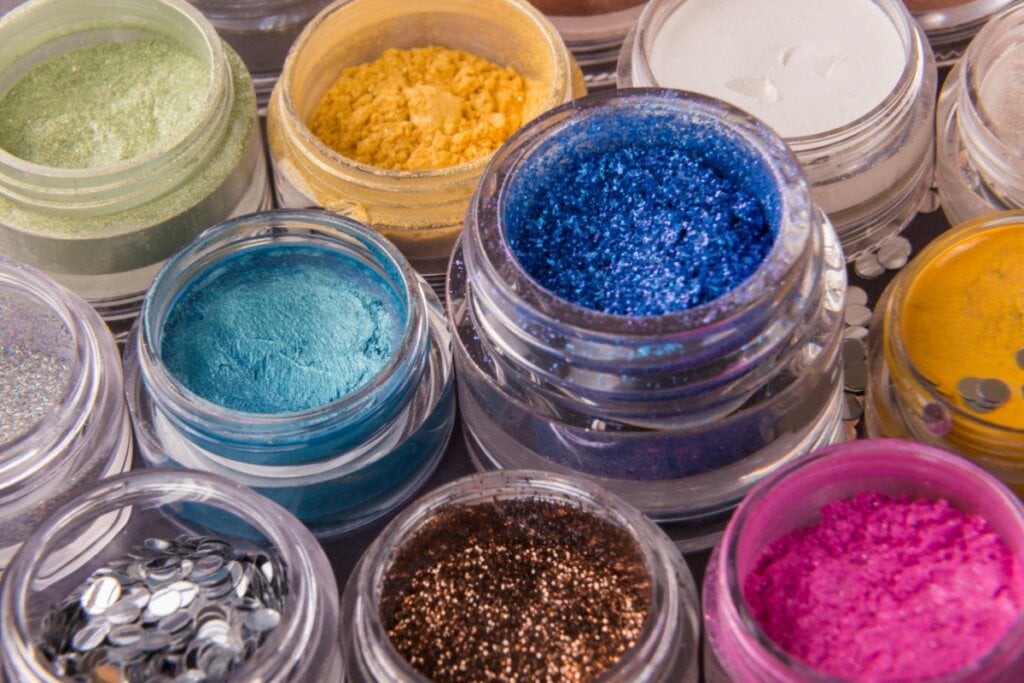 Brilhos soltos podem ser perigosos, enquanto produtos em gel podem ter menor risco de atrito.