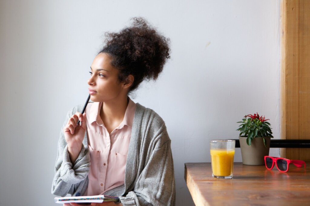Para quem está em um momento de baixa autoestima, Daniele Caetano sugere começar com uma pequena lista de reconhecimento pessoal, respondendo a duas perguntas simples: