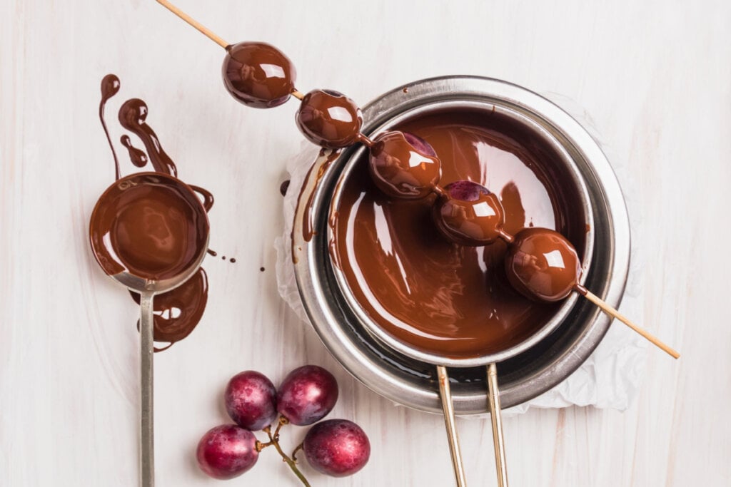 Espetinho de uva com chocolate (Imagem: VICUSCHKA | Shutterstock)