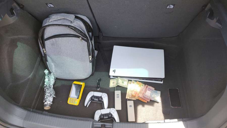 Durante a busca, foram encontrados um bloqueador de sinal de alarme de veículo, um radiocomunicador e um Playstation 5 recém-furtado.