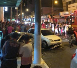 Duas pessoas que estavam em um Celta foram encaminhadas ao hospital. De acordo com o SAMU, uma das vítimas queixava-se de dor na região do tórax e tinha um corte na região frontal da cabeça.