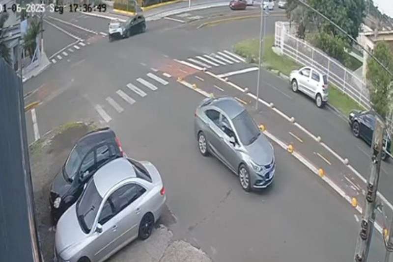 Um acidente em Osório, registrado por câmeras de segurança nesta segunda-feira (6), chamou atenção no bairro Porto Lacustre, nas esquinas das Avenidas Ildefonso Simões Lopes e Brasil.