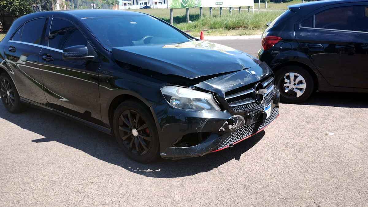 A manobra teria surpreendido o outro motorista, resultando no choque entre uma Mercedes e um Chevrolet Onix, que sofreram danos.