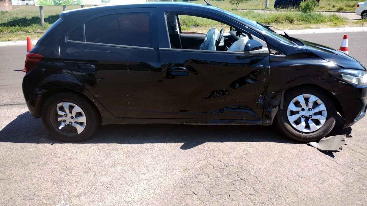 A batida ocorreu no momento em que um dos automóveis tentava acessar um condomínio situado exatamente em frente ao ponto da colisão.