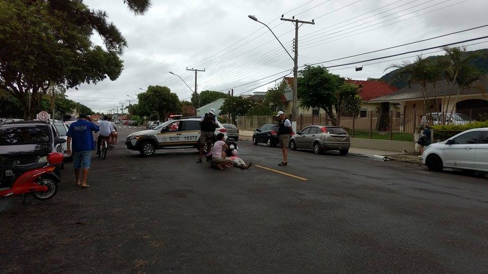 Uma mulher que estava na moto ficou ferida, a princípio sem gravidade. A Brigada Militar bloqueou o trânsito até a chegada do SAMU.