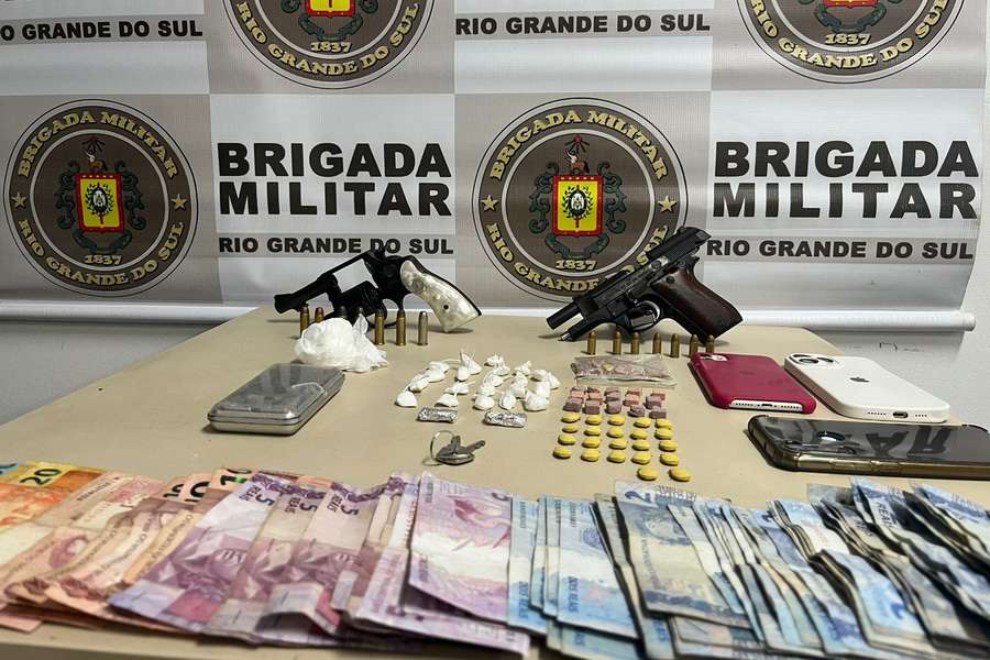 Durante a ação policial foi apreendido um revólver calibre .38, sete munições do mesmo calibre, uma pistola calibre .765, com sete munições do mesmo calibre, 37 comprimidos de ecstasy, 22 porções de cocaína, duas porções de maconha, celulares, balança de precisão e R$ 382.