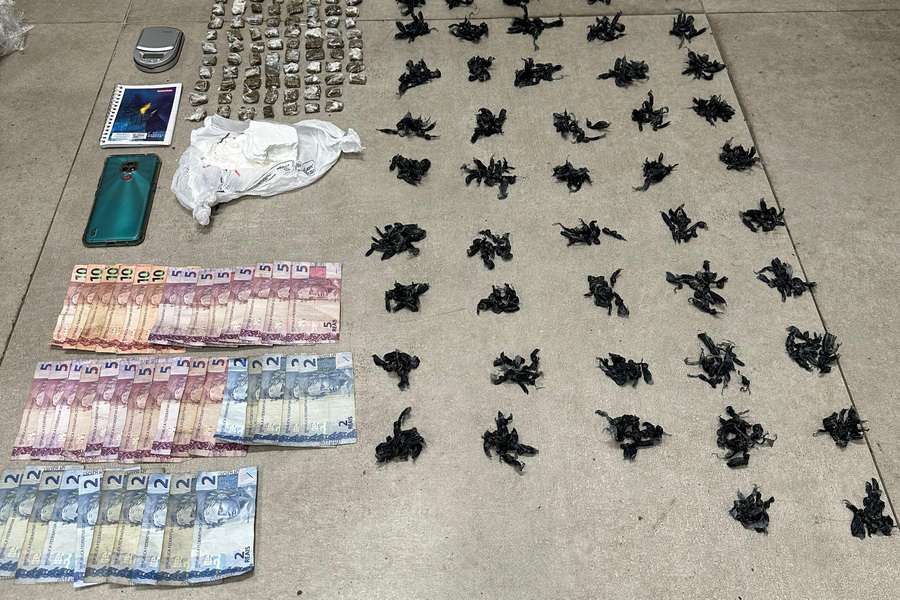 Durante a prisão, foram apreendidas 470 pedras de crack, 78 porções de maconha, uma porção de cocaína, uma balança de precisão e R$185.
