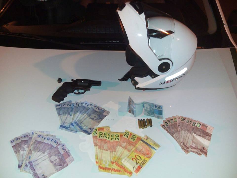 Também foi encontrado a quantia de R$486,00, que seriam referentes ao roubo do estabelecimento. O outro envolvido fugiu.