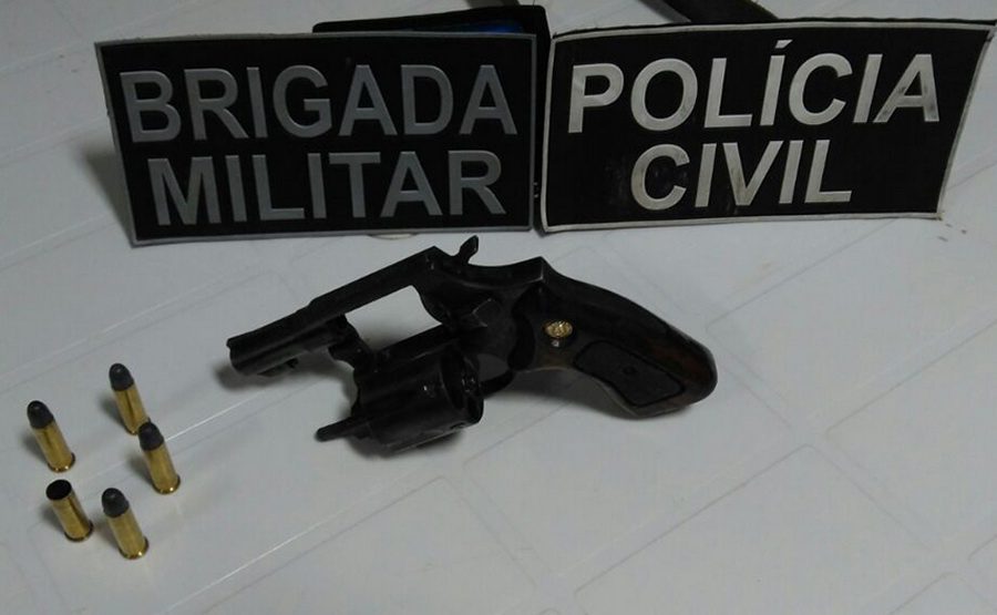 A arma que teria sido utilizada foi encontrada pelos policiais em um galpão, embaixo de uma pedra, dentro do canil. O revólver estava com numeração raspada e havia sido furtado em 2007.
