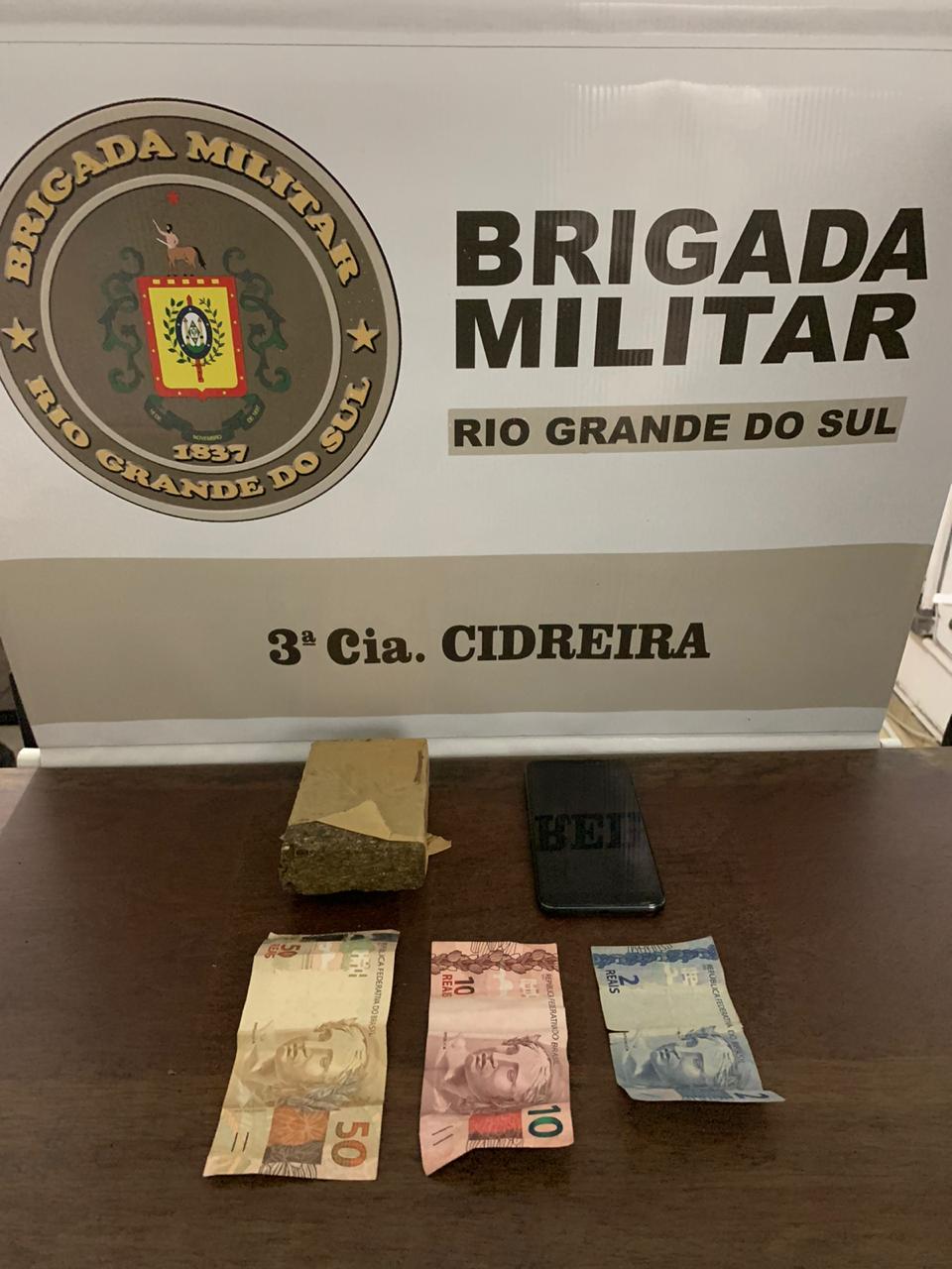 Na noite de terça-feira (25/8), policiais militares do 8º BPM apreenderam um menor de 17 anos e prenderam dois homens com um tijolo de maconha em Cidreira.