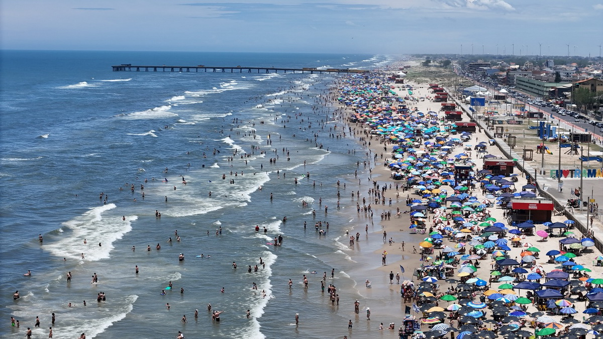 Desde as primeiras horas da manhã, milhares de veranistas ocuparam a faixa de areia, impulsionados por temperaturas elevadas, céu aberto e um mar que chamou atenção pela transparência incomum.