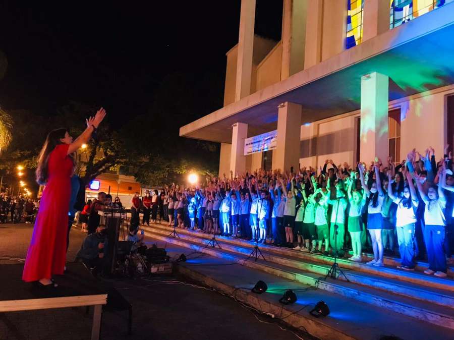 O coral do Colégio Adventista apresentou-se na Praça da Matriz em uma linda homenagem ao Natal, na noite dessa quinta-feira (02).