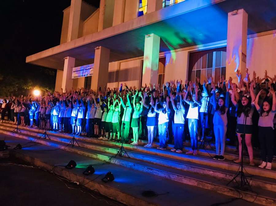 Foram 332 vozes em harmonia nas canções natalinas. Um lindo espetáculo musical e com fogos de artifícios para encantar as famílias dos alunos.