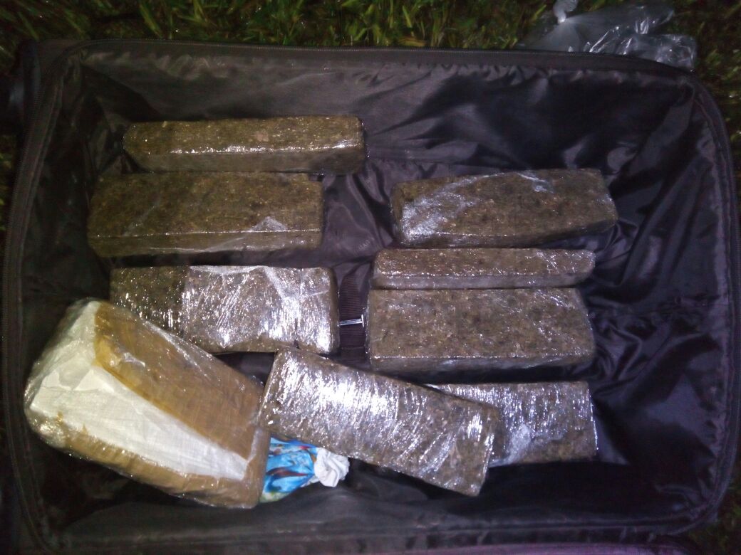 Na Hilux foram presos dois homens e uma mulher. Com eles estavam 3kg da droga e uma quantia em dinheiro. O veículo será periciado pois há suspeita de ter sido clonado.