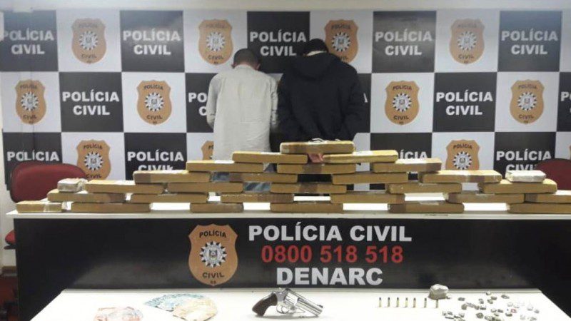 Na madrugada desta sexta (18), a Polícia Civil, por intermédio do Departamento Estadual de Investigação ao Narcotráfico (Denarc), apreendeu cerca de 30 quilos de maconha, uma porção de cocaína, um revólver calibre .38, munições e cerca de R$2.500,00 em espécie.