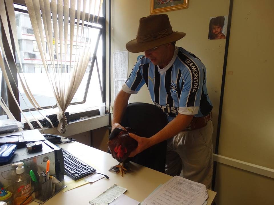 O secretário adjunto do Turismo, Martim Tressoldi, levou um galo na manhã desta sexta-feira, para a prefeitura de Osório.
