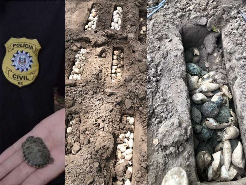 Durante a investigação, os policiais civis localizaram um local utilizado para o nascimento das tartarugas.