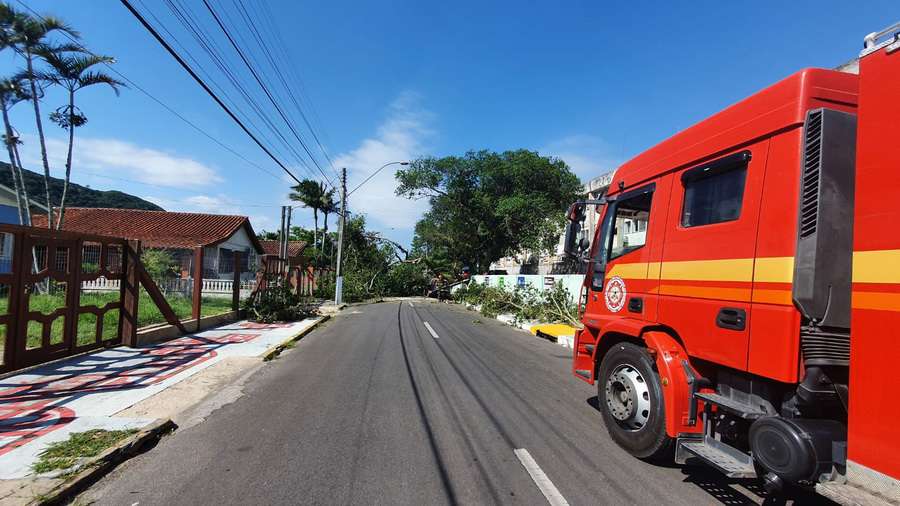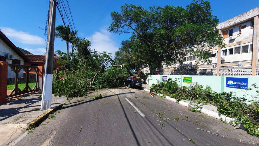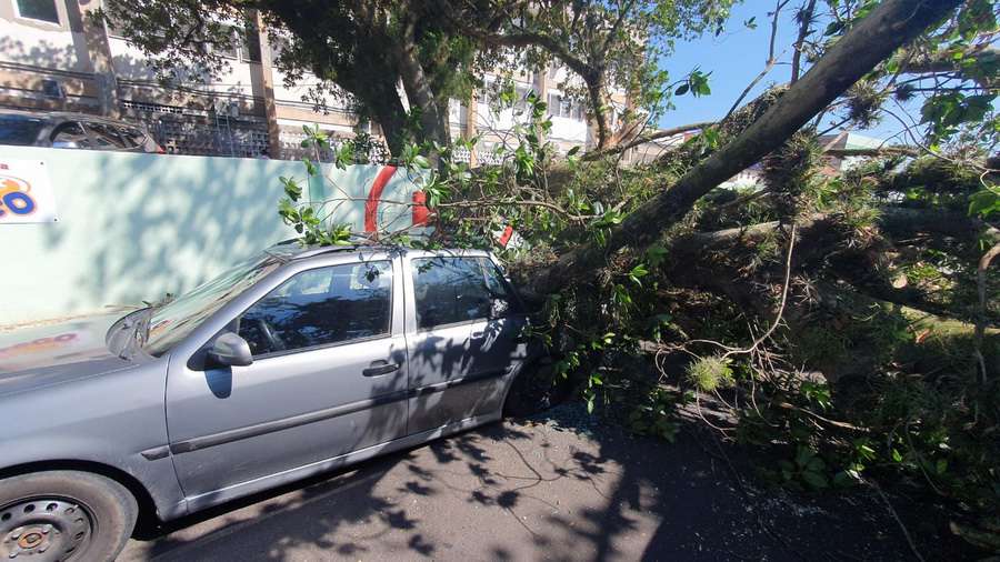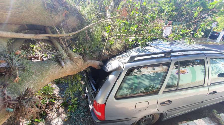 A árvore ficou sobre toda a via, bloqueando o trânsito, mas ninguém ficou ferido.