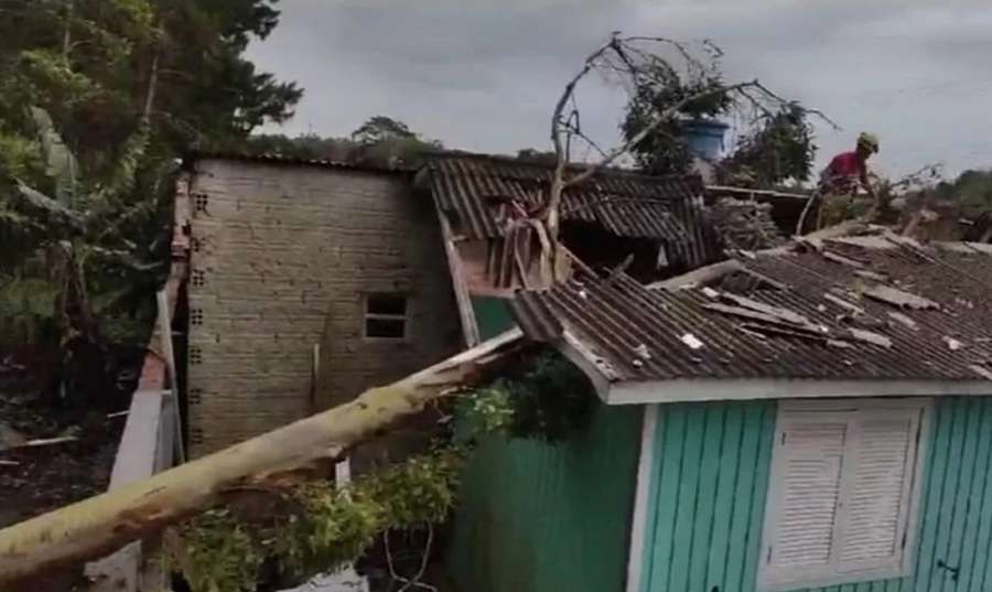 Uma árvore caiu sobre uma casa na manhã desta segunda-feira (04), em Tramandaí.
