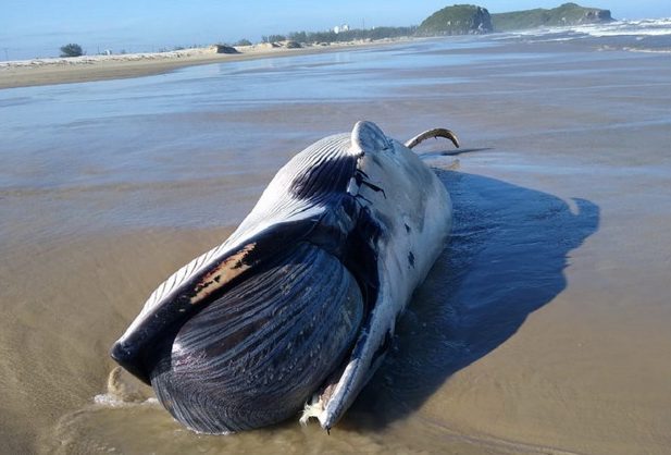 Uma baleia foi encontrada morta na manhã deste sábado (19), na beira mar, em Torres.