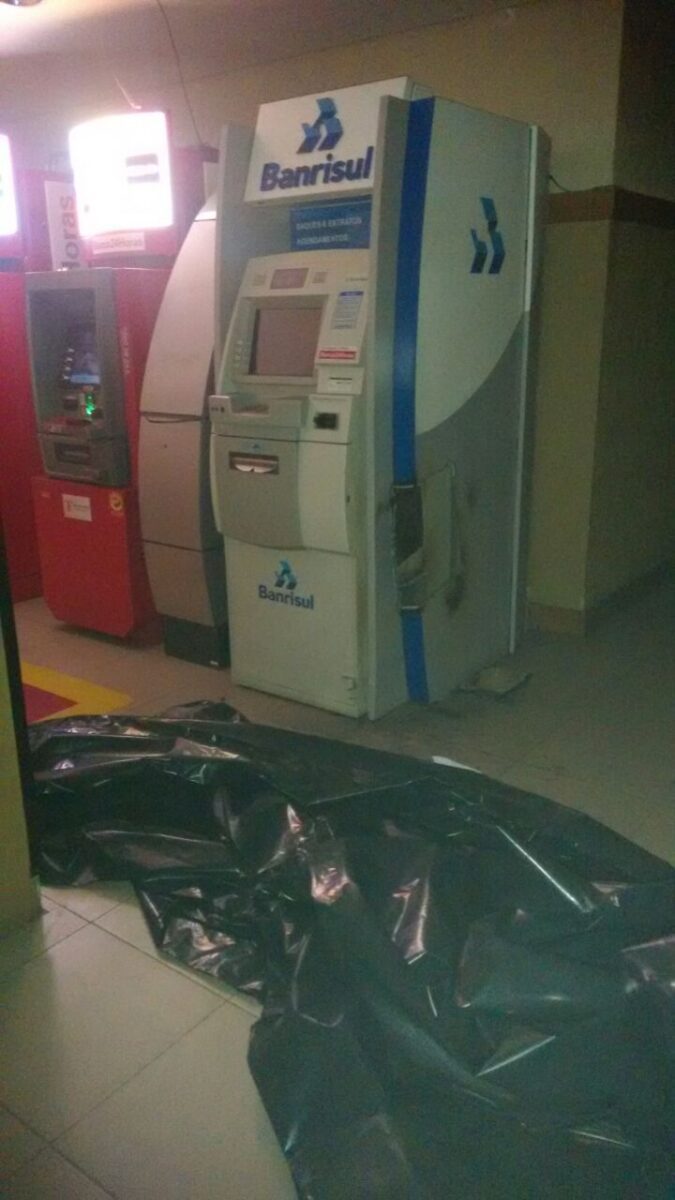 Bandidos atacaram com maçarico um caixa eletrônico dentro do supermercado Nacional, na madrugada desta quinta-feira (14), em Imbé.
