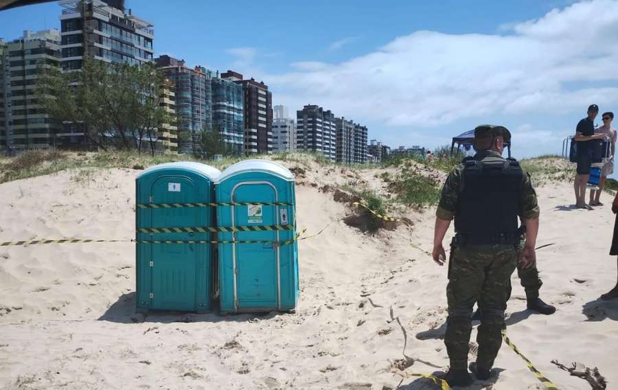 Neste sábado, 30/12, uma equipe da Patram reforçando o 1° Batalhão Ambiental na Operação Golfinho, em resposta a uma denúncia, procedeu à verificação de dois banheiros químicos posicionados nas dunas da orla marítima de Capão da Canoa.